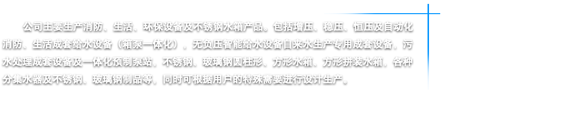 江蘇燁達(dá)環(huán)保設(shè)備有限公司坐落在江蘇省鹽城市建湖縣城,東臨黃海之濱,背倚蘇北平原,處于長三角經(jīng)濟一體化和江蘇沿海開發(fā)兩個國家級戰(zhàn)略疊加區(qū)域內(nèi),素有“水鄉(xiāng)明珠”美稱。我公司鑒定走“產(chǎn)、學(xué)、研”相結(jié)合的路子,是江蘇省供水設(shè)備行業(yè)的大型企業(yè)。公司以“一流的管理,一流的研發(fā)設(shè)計,一流的質(zhì)量意識,一流的售后服務(wù)”為宗旨,嚴(yán)格控制原材料質(zhì)素,講求“品質(zhì)是企業(yè)的生命力”的理念,嚴(yán)把質(zhì)量關(guān),從而為客戶提供優(yōu)質(zhì)的供水設(shè)備。公司主要生產(chǎn)消防、生活、環(huán)保設(shè)備及不銹鋼水箱四大類產(chǎn)品。包括增壓、穩(wěn)壓、恒壓及自動化消防、生活成套給水設(shè)備(箱泵一體化),無負(fù)壓智能給水設(shè)備自來水生產(chǎn)專用成套設(shè)備,污水處理成套設(shè)備及一體化預(yù)制泵站,不銹鋼、玻璃鋼圓柱形、方形水箱、方形拼裝水箱,各種分集水器及不銹鋼、玻璃鋼制品等,同時公司可根據(jù)用戶的特殊需要進(jìn)行設(shè)計生產(chǎn)。燁達(dá)人將以科學(xué)的管理、精湛的技術(shù)、可靠的質(zhì)量、優(yōu)良的品質(zhì)向社會各界服務(wù),我們始終坦誠相見,我們當(dāng)然走在最前面······ |